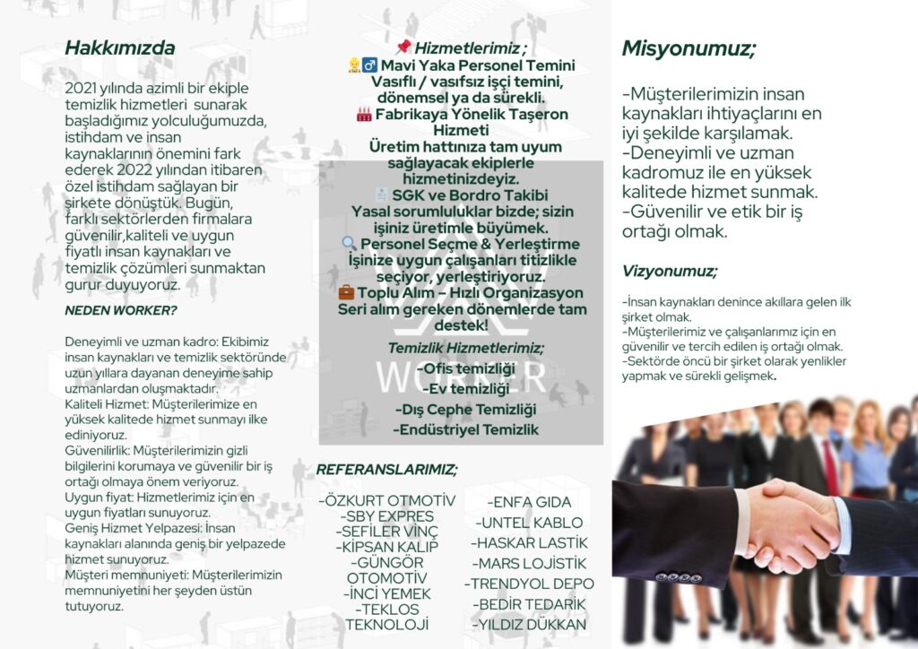 Müşterilerimizin operasyonel yüklerini azaltıp verimliliklerini artırmayı, doğru personel ve ekipman desteğiyle projelerinin sorunsuz ilerlemesini sağlamayı hedefliyoruz.
